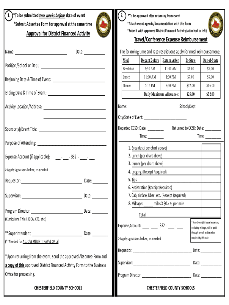 1. *To be submitted two weeks before date of event *Submit Absentee Form for approval at the same disapproval for District Financed Activity Name: Date: 2.×To be approved after returning from event