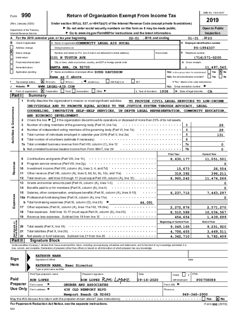 990FormDo not enter social security numbers on this form as it may be made public. Department of the Treasury Internal Revenue ServiceNow the 2019 calendar year, or tax year beginningBCheck if applicable:C0201