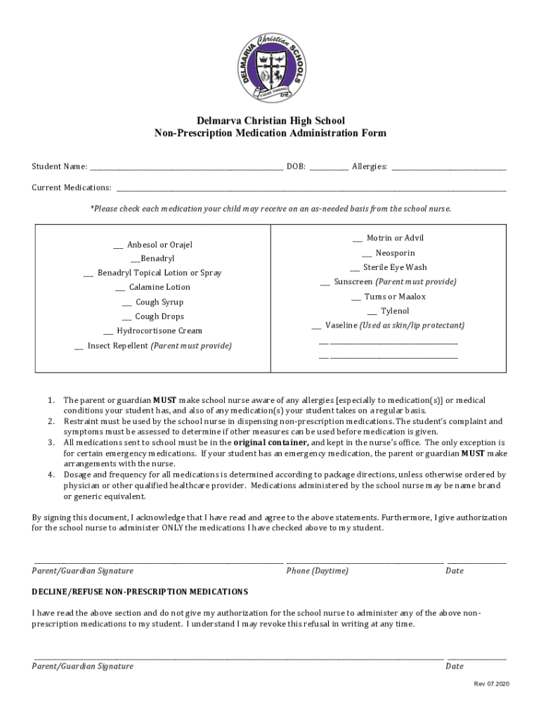 Get the free Non-Prescription Medication Form - Delmarva Christian