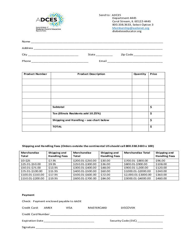 Send to: ACES Department 4445 Carol Stream, IL 601224445 800.338.3633, Select Option 3 Membership ardent.org diabetes educator. Ornate Address City State Phone Product Number Code Email Product DescriptionQuantityPriceSubtotal$Tax