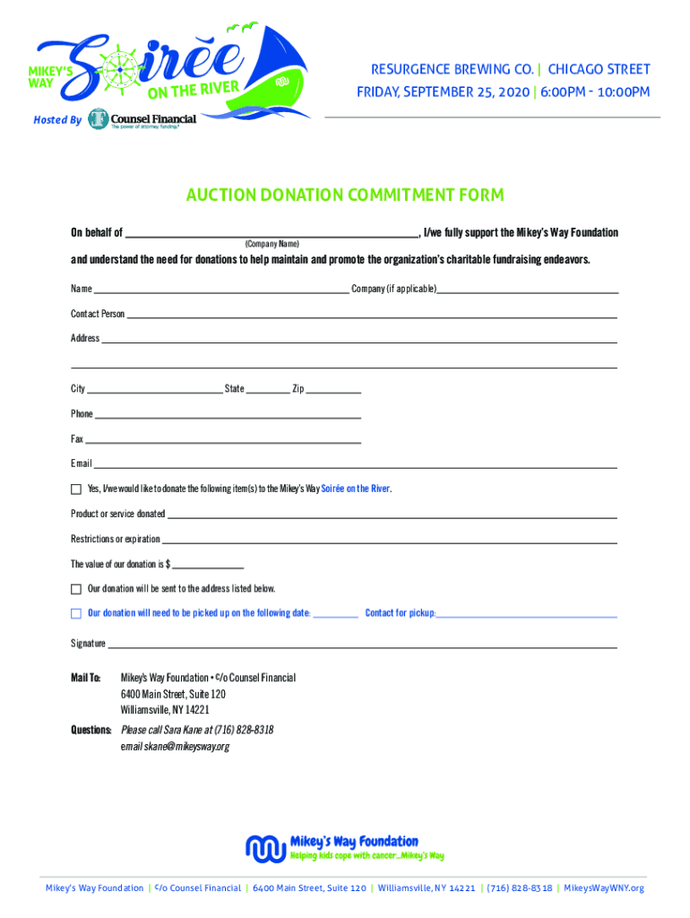 RESURGENCE BREWING CO. CHICAGO STREET FRIDAY, SEPTEMBER 25, 2020 6:00PM 10:00PM Hosted Auction DONATION COMMITMENT FORM On behalf of, I/we fully support the Midas Way Foundation(Company Name)and understand