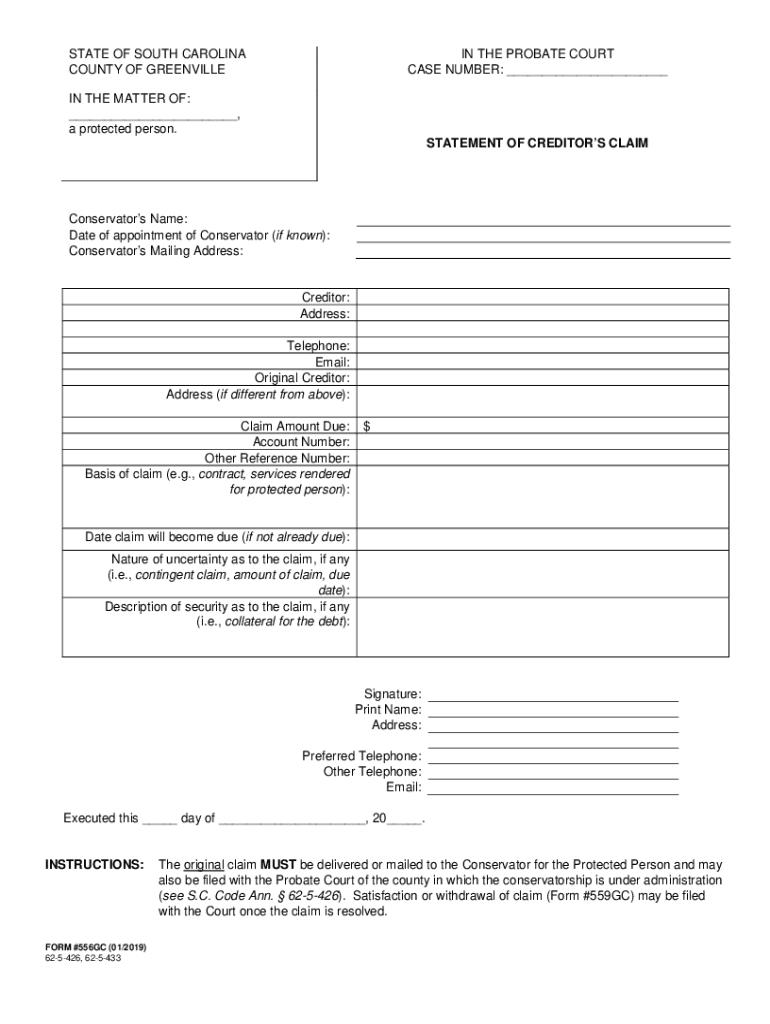 Get the free STATEMENT OF CREDITORS CLAIM - Greenville County