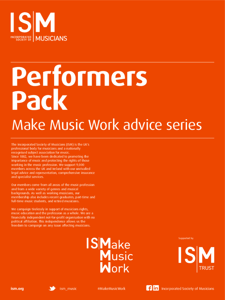 Performers Package Music Work advice series Incorporated Society of Musicians (ISM) is the UK\'s professional body for musicians and a nationally recognized subject association for music. Since 1882,