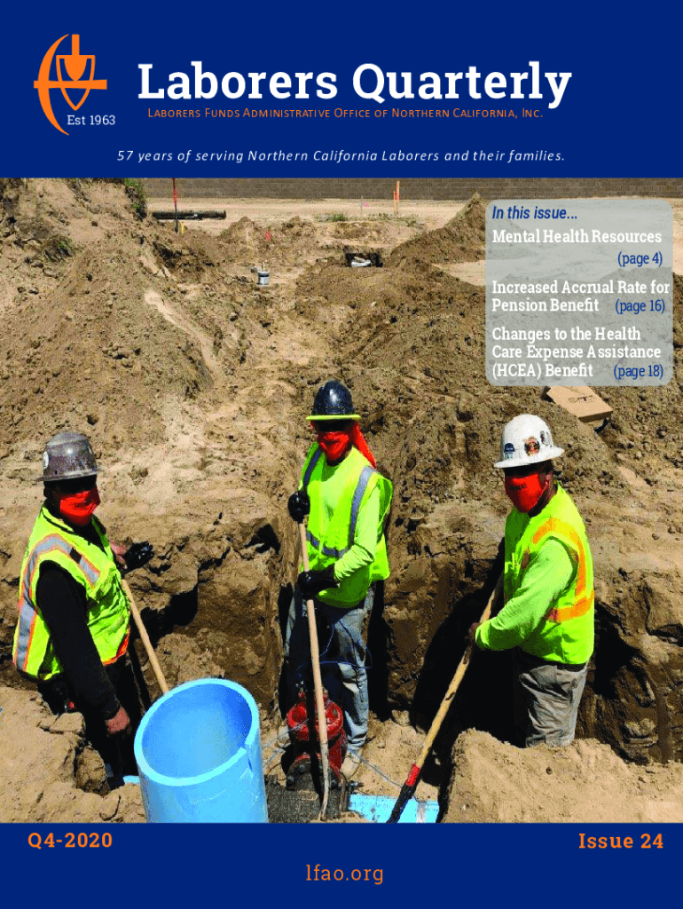 Est 1963Laborers Quarterly Laborers Funds Administrative Office of Northern California, Inc.57 years of serving Northern California Laborers and their families. In this issue... Mental Health Resources