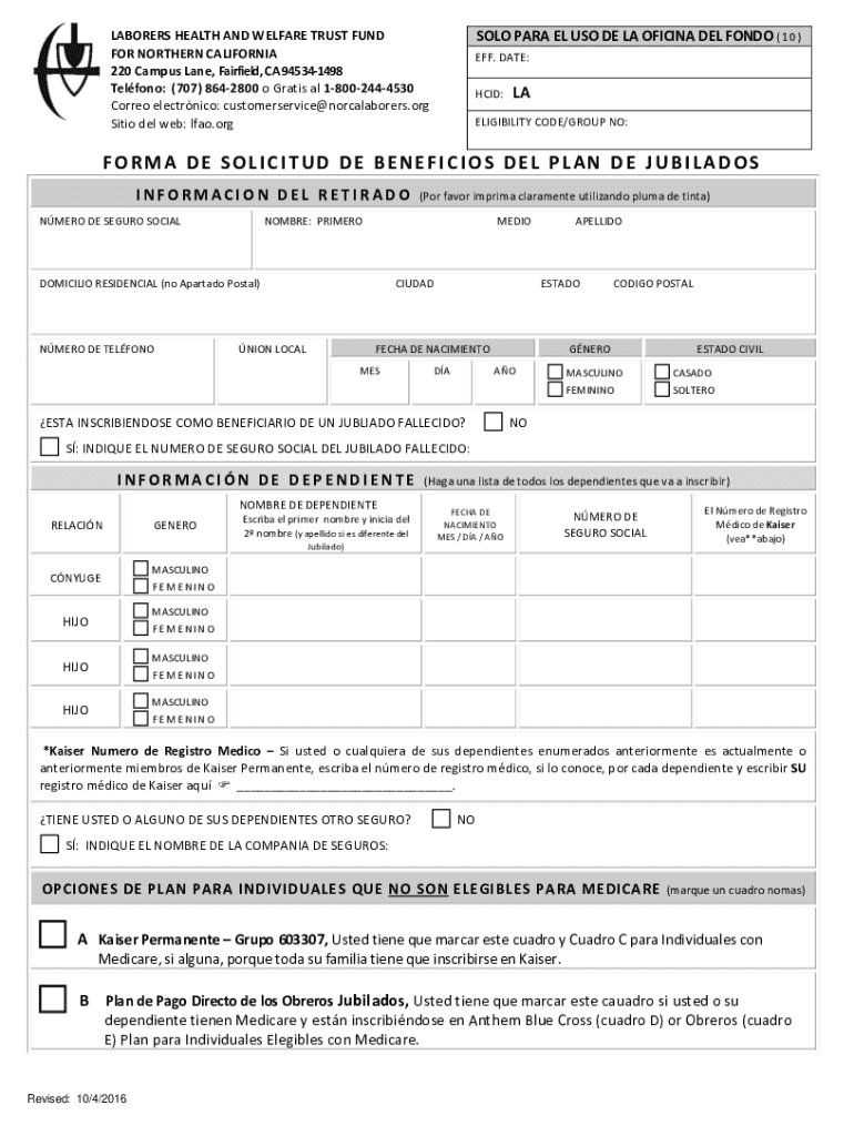 Get the free Laborers Health and Welfare Trust Fund ... - norcalaborers.org
