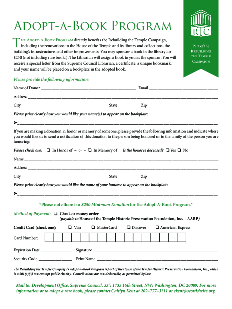 Adoptable Program The Adoptable Program directly benefits the Rebuilding the Temple Campaign, including the renovations to the House of the Temple and its library and collections, the buildings' infrastructure,