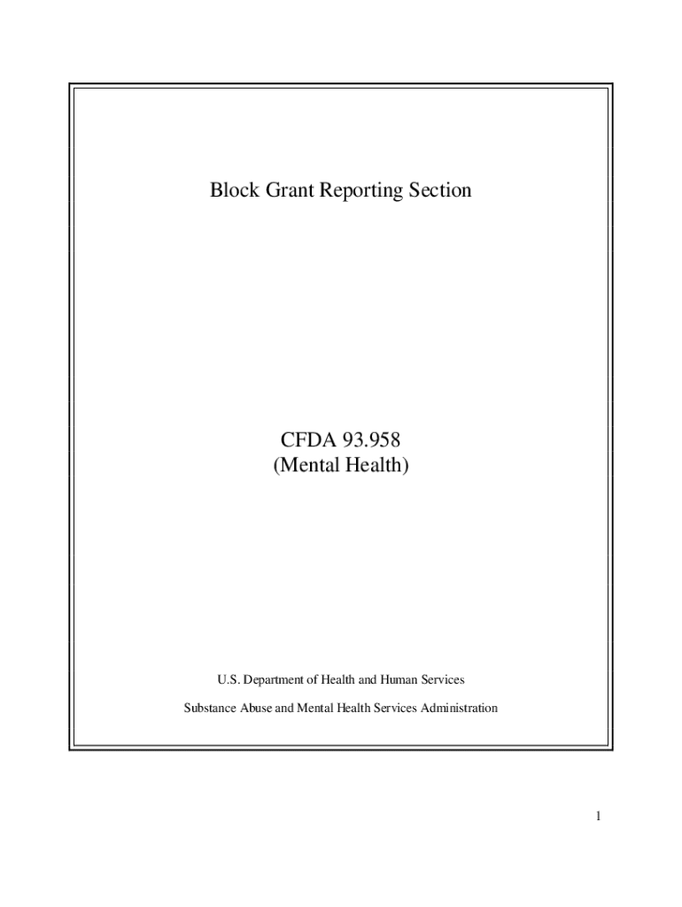 Block Grant Reporting Sectioned 93.958 (Mental Health)U.S. Department of Health and Human Services Substance Abuse and Mental Health Services Administration1Table of Contents Section A. Introduction