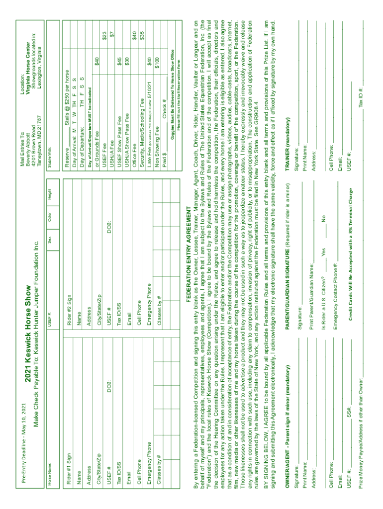 2021 Berwick Horse ShowEmergency Phone Classes by #Emergency PhoneClasses by #Sex DOB:ColorHeight$$$$401004530Please ll out the Stall Reserve “on FormCoggins Must Be Delivered To Horse Show Officer