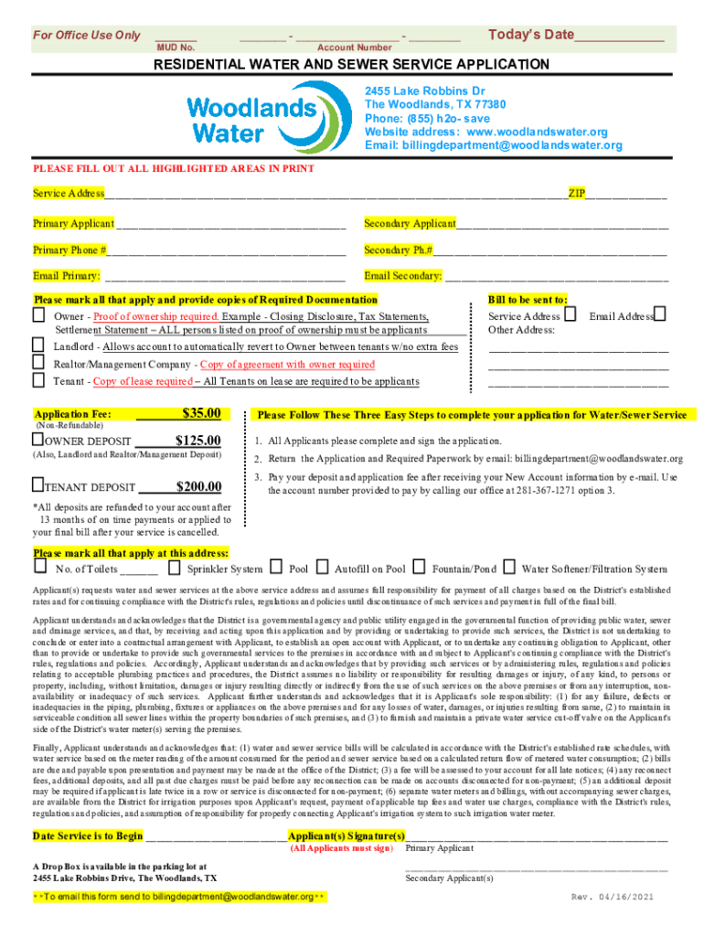 Anyone seeking water and sewer services from the relevant provider is required to file a water-sewer service application rev.