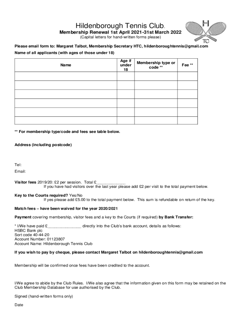 Get the free New Member application form 2021 - Hildenborough Tennis ...