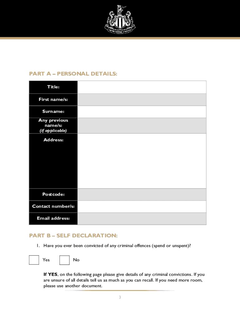 Get the free SELF-DECLARATION FORM FOR APPLICANTS ... - Newcastle United F.C.