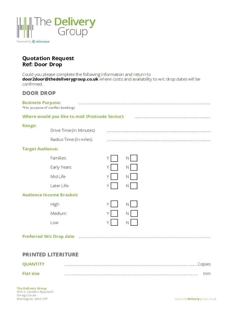 Get the free Quotation Request Ref: Door Drop - The Delivery Group