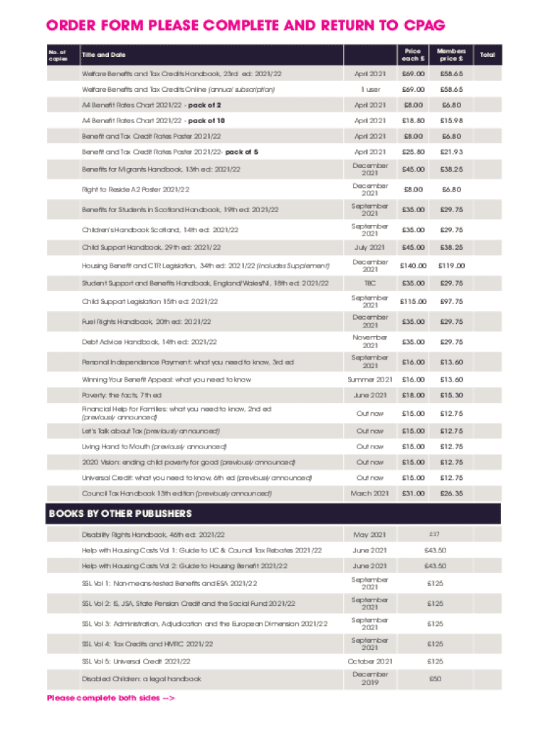 ORDER FORM PLEASE COMPLETE AND RETURN TO CPA No. of copies Price each Member price April 202169.0058.651 user69.0058.65A4 Benefit Rates Chart 2021/22 pack of 2April 20218.006.80A4 Benefit Rates Chart