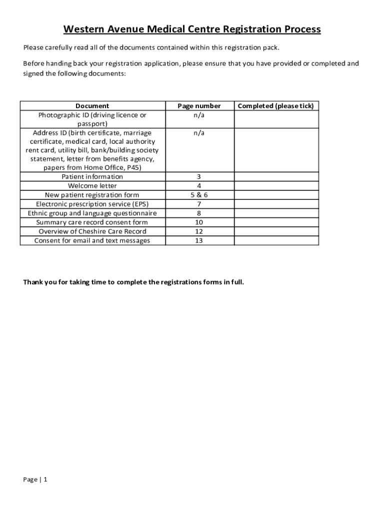 Western Avenue Medical Center Registration Process Please carefully read all the documents contained within this registration pack. Before handing back your registration application, please ensure