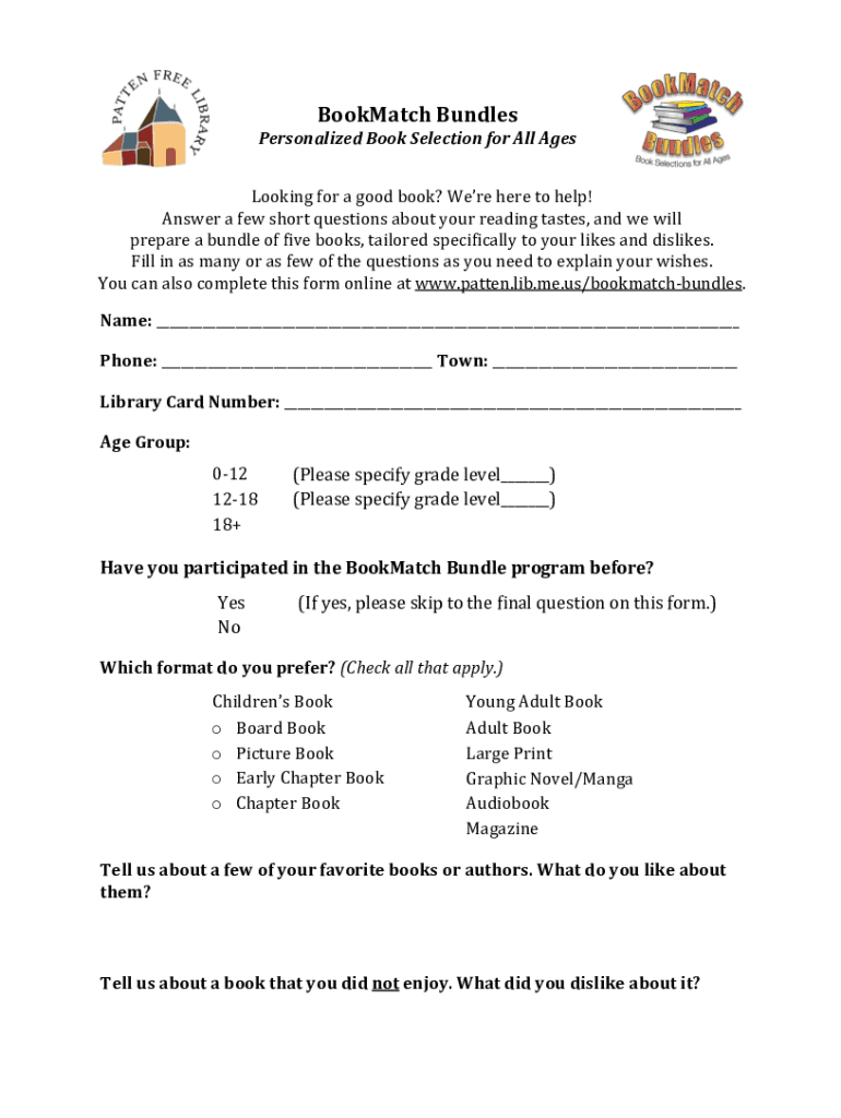 Bookmaker BundlesPersonalized Book Selection for All Overlooking for a good book? Were here to help! Answer a few short questions about your reading tastes, and we will prepare a bundle of five books,