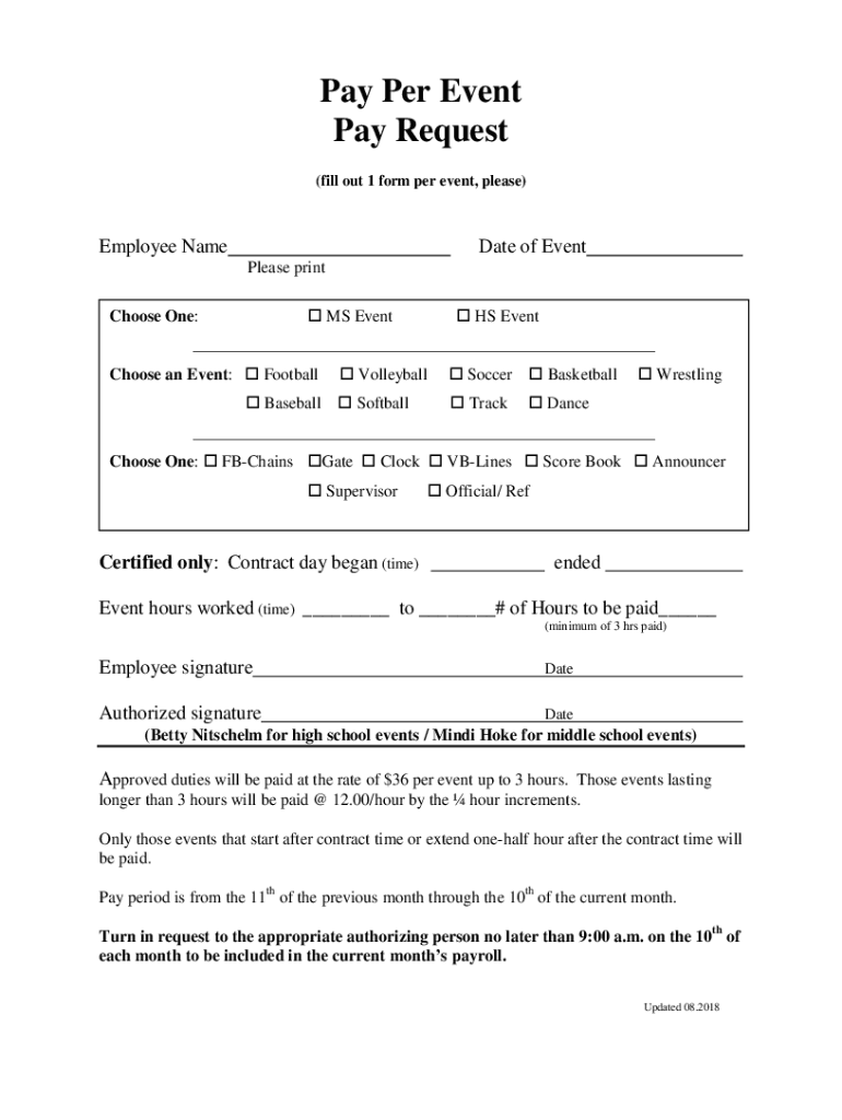 Get the free Pay Per Event Pay Request form