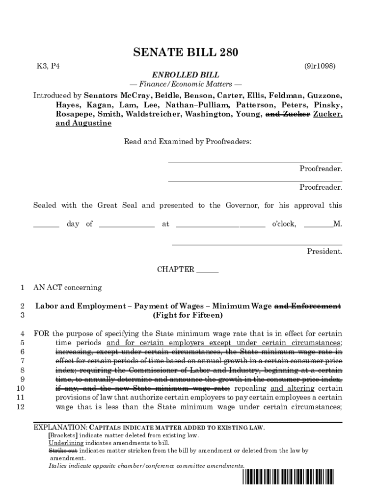 SENATE BILL 280 K3, P4(9lr1098) ENROLLED BILL Finance/Economic Matters Introduced by Senators McCray, Badly, Benson, Carter, Ellis, Feldman, Guzzle, Hayes, Kagan, Lam, Lee, NathanPulliam, Patterson,