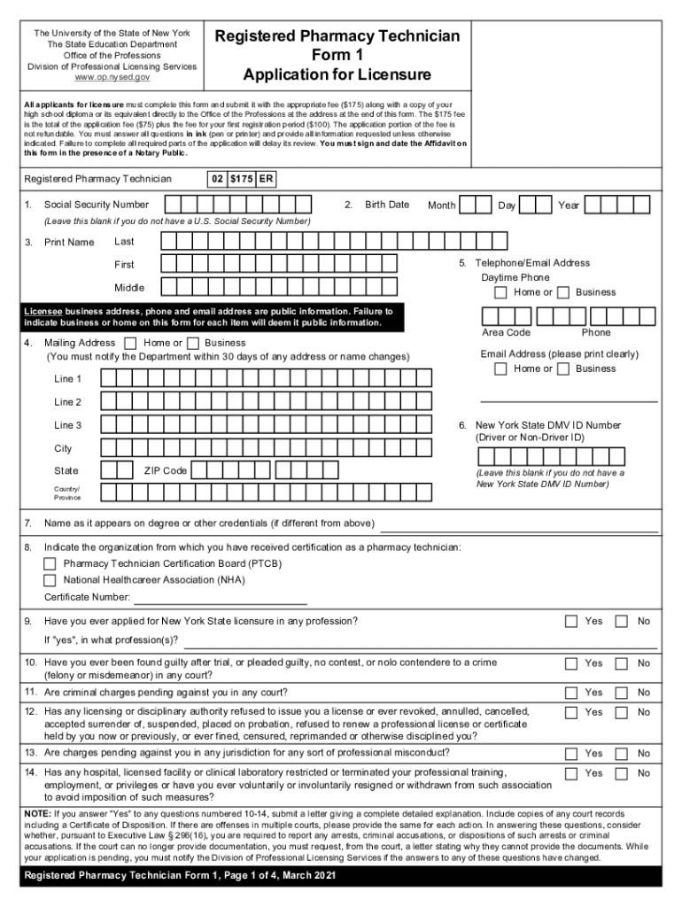 The University of the State of New York The State Education Department Office of the Professions Division of Professional Licensing Services www.op.nysed.govRegistered Pharmacy Technician Form 1 Application