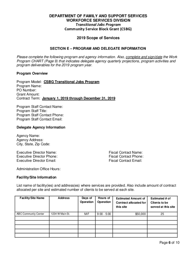 DEPARTMENT OF FAMILY AND SUPPORT SERVICES WORKFORCE SERVICES DIVISIONTransitional Jobs Program Community Service Block Grant (CSG) 2019 Scope of ServicesSECTION A GOALS AND OBJECTIVES Program Goals