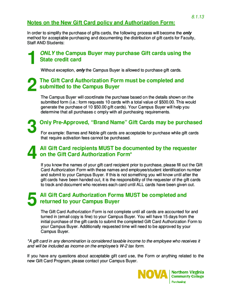 Get the free Notes on the New Gift Card policy and Authorization Form ... - blogs nvcc