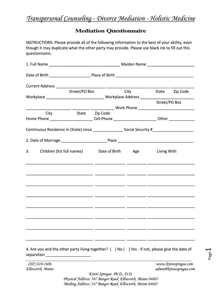 Get the free Divorce Mediation Questionnaire