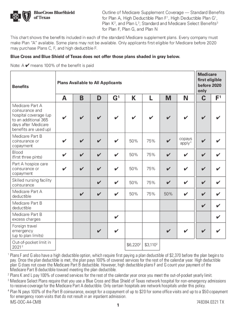 Get the free Blue Cross and Blue Shield of Texas - Outline of Medicare Supplement Coverage - Texa...