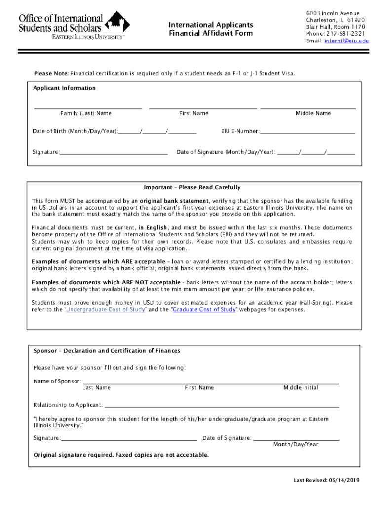 600 Lincoln Avenue Charleston, IL 61920 Blair Hall, Room 1170 Phone: 2175812321 Email: interntl@eiu.eduInternational Applicants Financial Affidavit Formulas Note: Financial certification is required