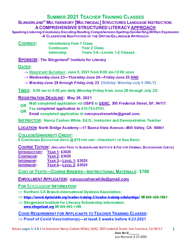 Get the free 3.10.2021 revision.Teacher Training Info & Application.Slingerland