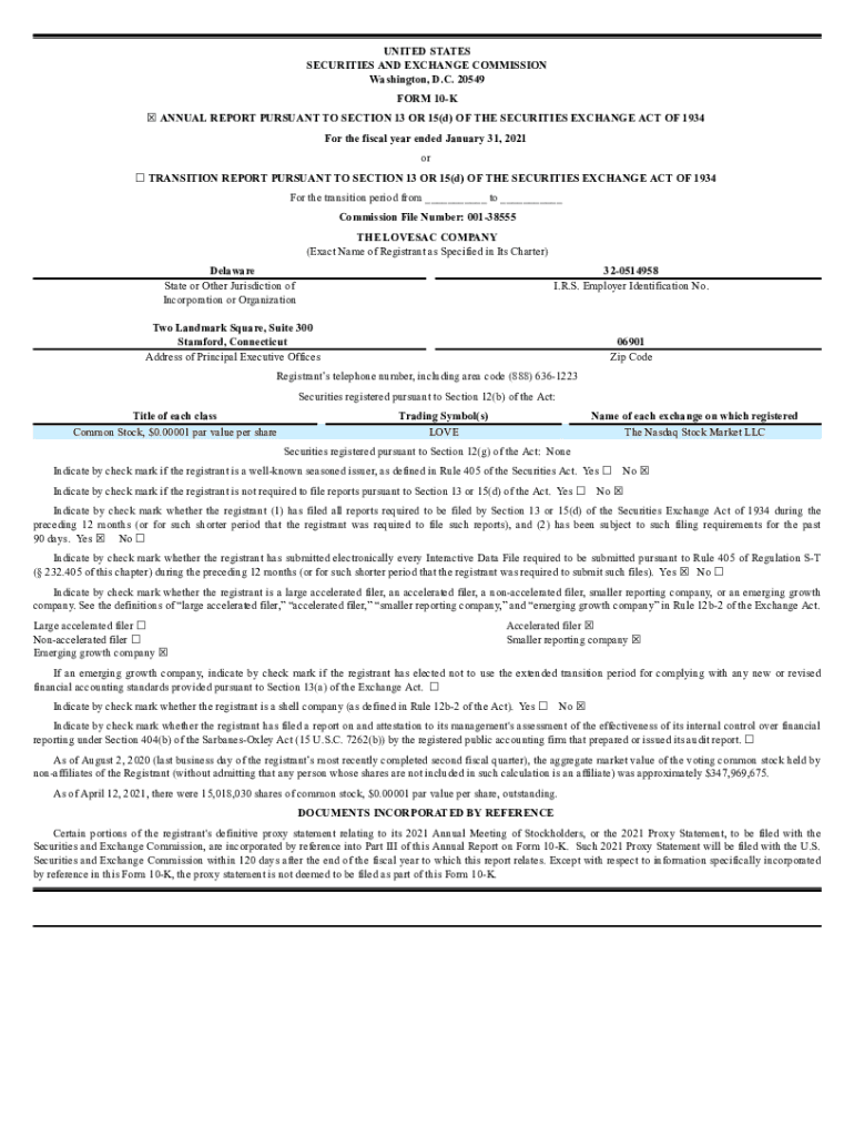 Get the free by re fe re nc e i n t hi s F orm 10-K , t he proxy ... - LoveSac