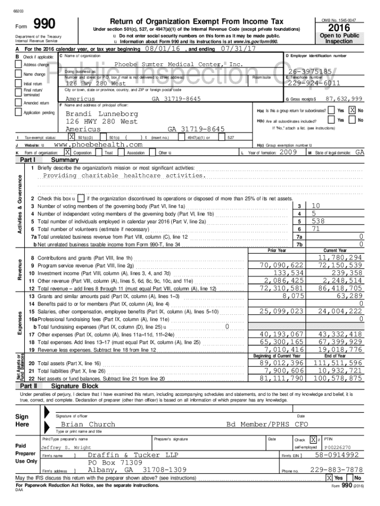 68203Form990Return of Organization Exempt From Income Department of the Treasury Internal Revenue Service For the 2016 calendar year, or tax year beginning B Check if applicable: C Name of organization08/01/16,