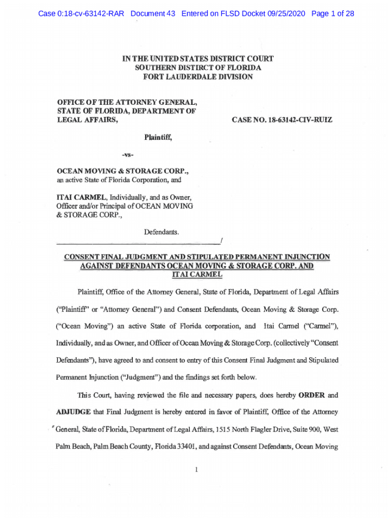 Case 0:18cv63142RAR Document 43 Entered on FLED Docket 09/25/2020-Page 1 of 28IN TIME UNITED STATES DISTRICT COURT SOUTHERN DISTINCT OF FLORIDA FORT LAUDERDALE DIVISION OFFICE OF THE ATTORNEY GENERAL,