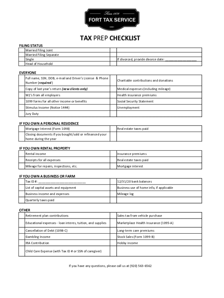 How to fill out tax prep checklist?