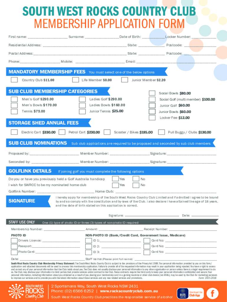 Get the free SWRCC Membership Form - South West Rocks Country Club