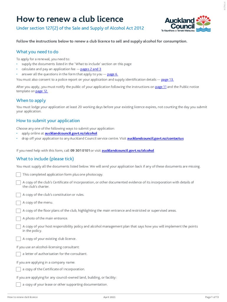 BC5760_L6How to renew a club license Under section 127(2) of the Sale and Supply of Alcohol Act 2012 Follow the instructions below to renew a club license to sell and supply alcohol for consumption.