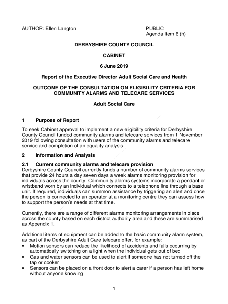 AUTHOR: Ellen LangtonPUBLIC Agenda Item 6 (h)DERBYSHIRE COUNTY COUNCIL CABINET 6 June 2019 Report of the Executive Director Adult Social Care and Health OUTCOME OF THE CONSULTATION ON ELIGIBILITY