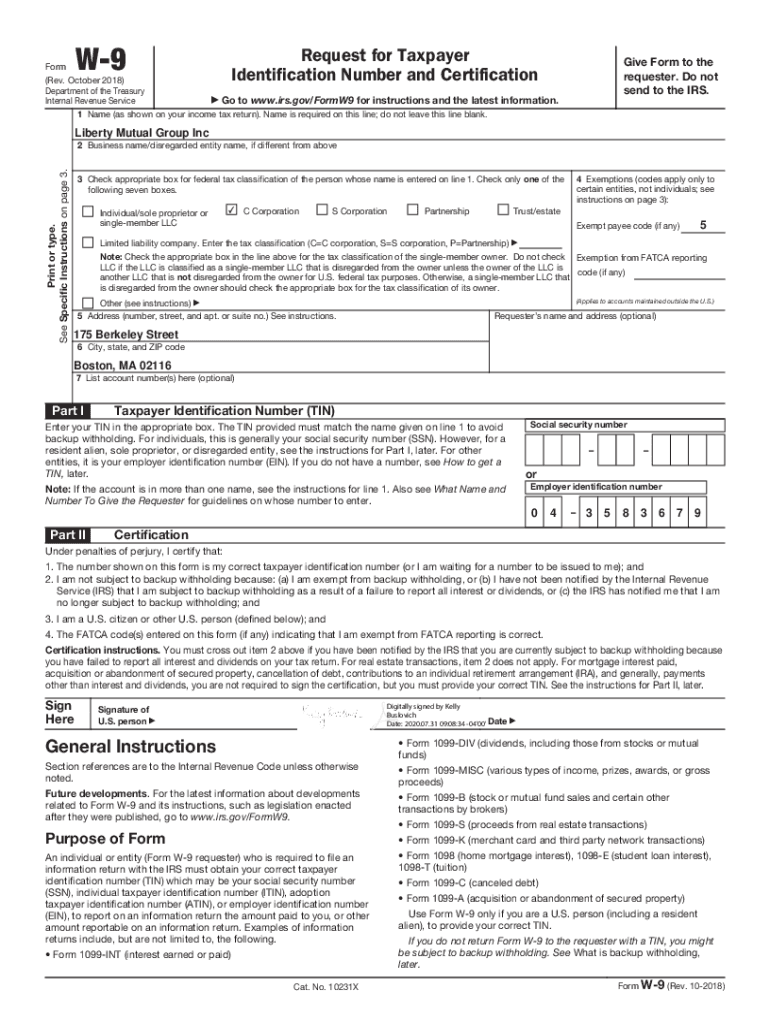 W9Form (Rev. October 2018) Department of the Treasury Internal Revenue ServiceRequest for Taxpayer Identification Number and Certification give Form to the requester. Do not send to the IRS. Go to