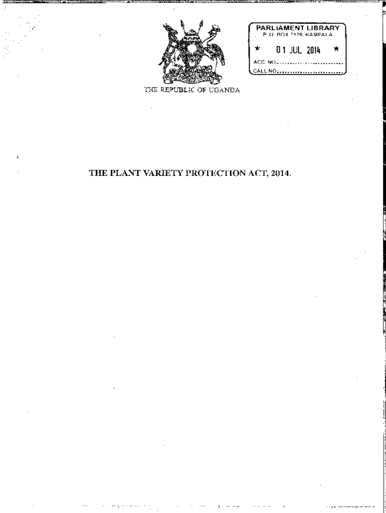 . .n. 'Joining:::l.;:. . . .NV FEE. ........... m PARLIAMENT LIBRARY “PO BOX 717B, KAMPALA* Ace0 1 JUL 2014×NO .................., .CALL NO, ...................... Tim REPUBLIC OF UGA DATE PLANT