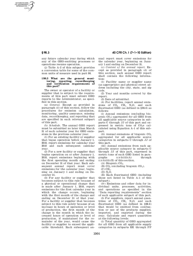 98.340 CFR Ch. I (7110 Edition)any future calendar year during which any of the Emitting processes or operations resume operation. (j) Table A2 of this subpart provides a conversion table for some