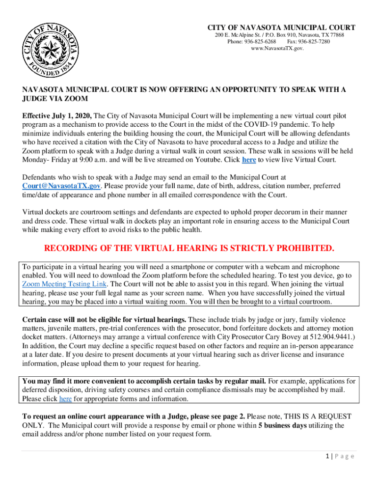 Get the free Virtual Court Request Form