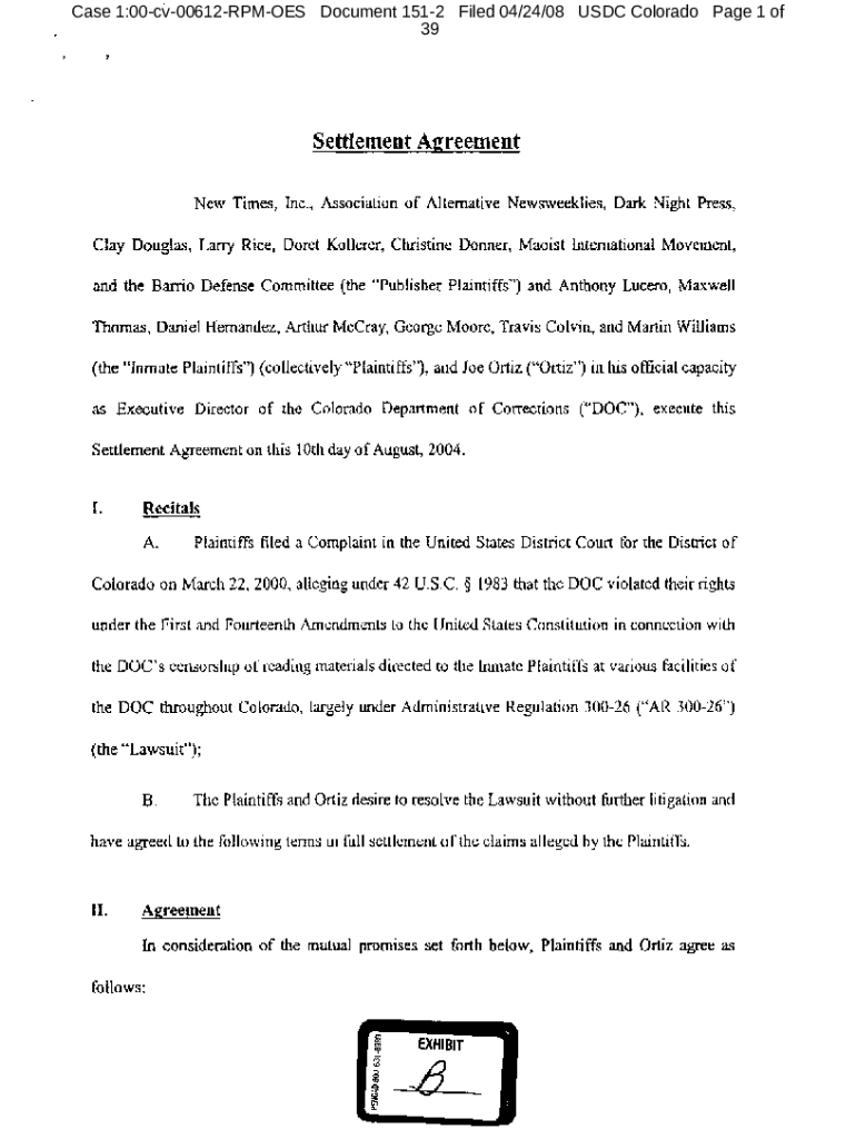 Get the free New Times v. Suthers - Settlement Agreement