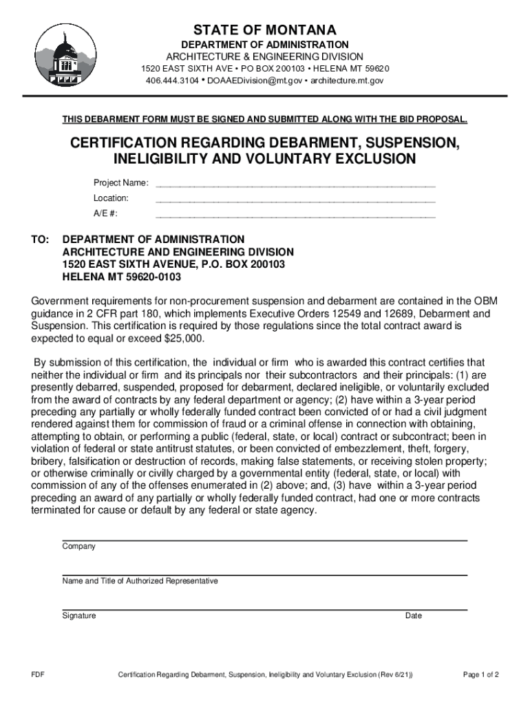 STATE OF MONTANADEPARTMENT OF ADMINISTRATION ARCHITECTURE & ENGINEERING DIVISION 1520 EAST SIXTH AVE PO BOX 200103 HELENA MT 59620 406.444.3104 DOAAEDivision CT.gov architecture.CT. Gothic DEBARMENT