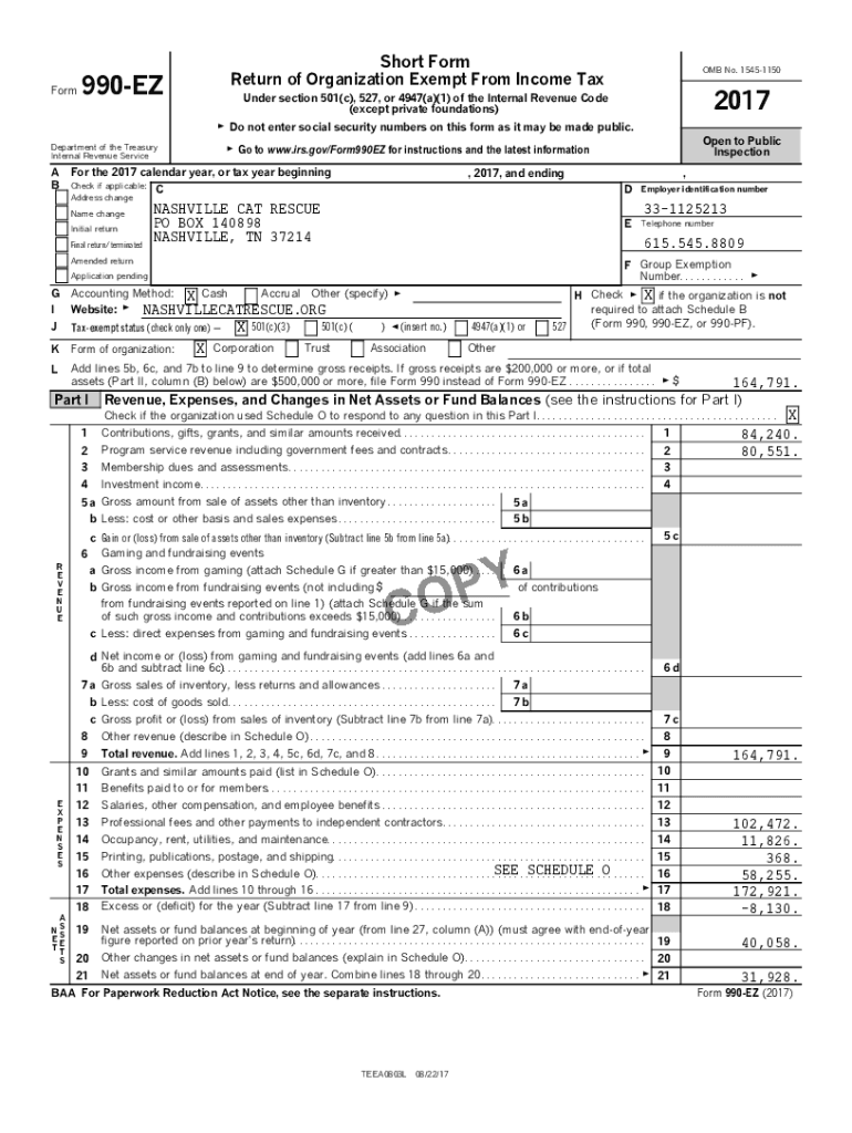 Get the free Nashville Cat Rescue - Copy Form 990-EZ FYE 12.31.17