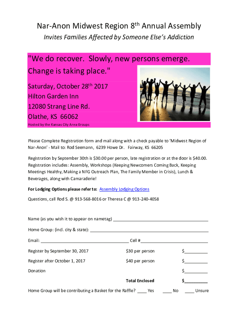 Get the free Nar-Anon Midwest Region 8th Annual Assembly