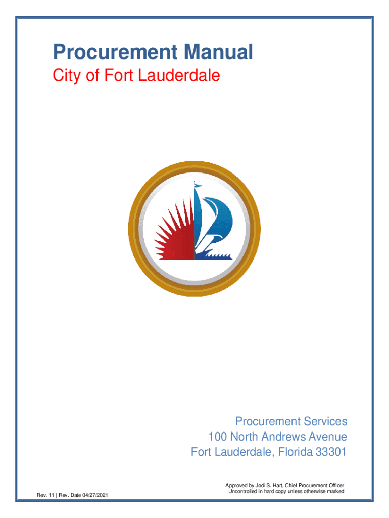 Procurement Manual City of Fort LauderdaleProcurement Services 100 North Andrews Avenue Fort Lauderdale, Florida 33301Rev. 11 Rev. Date 04/27/2021Approved by Jodi S. Hart, Chief Procurement Officer