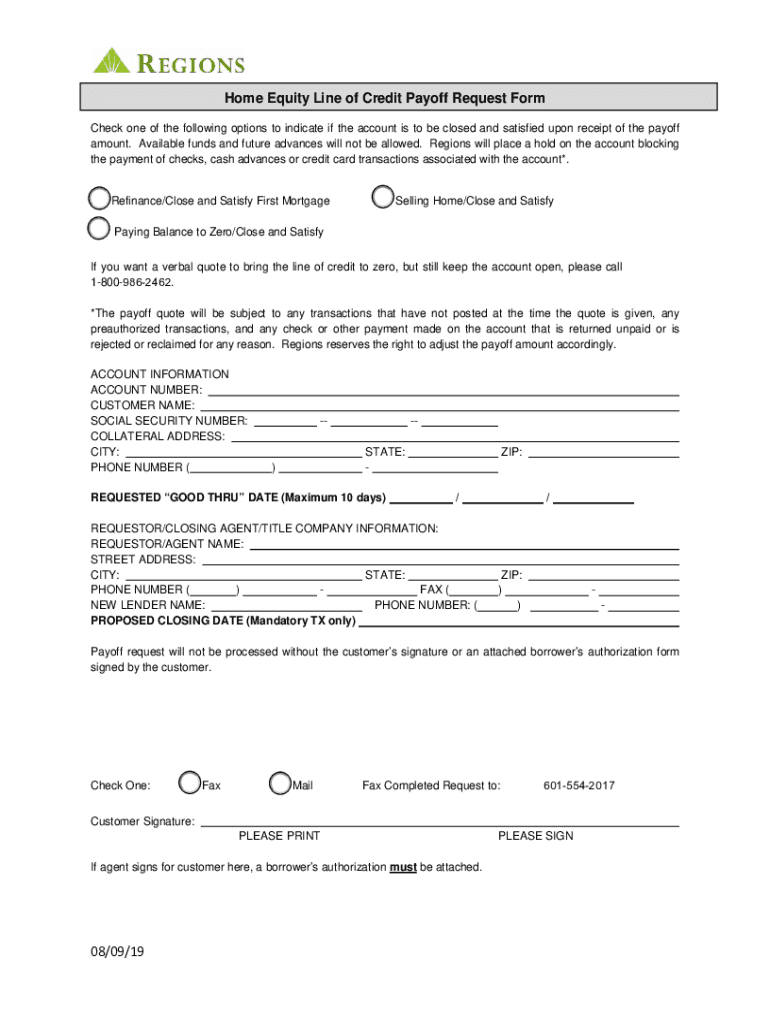 Home Equity Line of Credit Payoff Request Form Instructions & Mailing Information PAYOFF REQUEST INSTRUCTIONS:1. PRINT AND FILL OUT THIS FORM Please complete all relevant sections of the Payoff Request