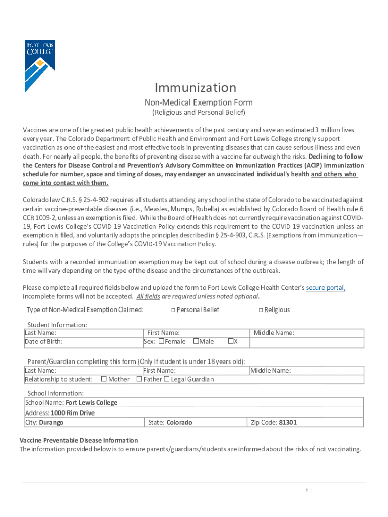 ImmunizationNonMedical Exemption Form (Religious and Personal Belief)Vaccines are one of the greatest public health achievements of the past century and save an estimated 3 million lives every year.