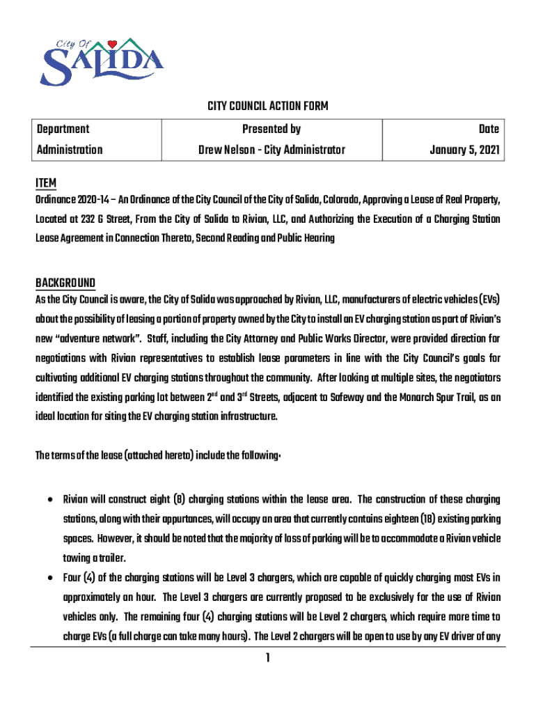 CITY COUNCIL ACTION FORM Department AdministrationPresented by Drew Nelson City AdministratorDate January 5, 2021ITEMOrdinance 202014 An Ordinance of the City Council of the City of Saliva, Colorado,