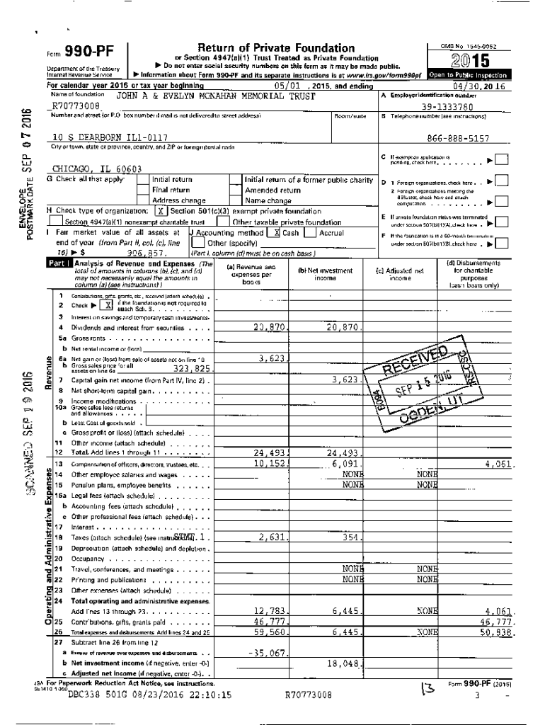 FormReturn of Private Foundation990PFOMB No 15450052or Section 4947(a)(1) Trust Treated as Private Foundation O 1 5 Do not enter social security numbers on this form as it may be made public. Information