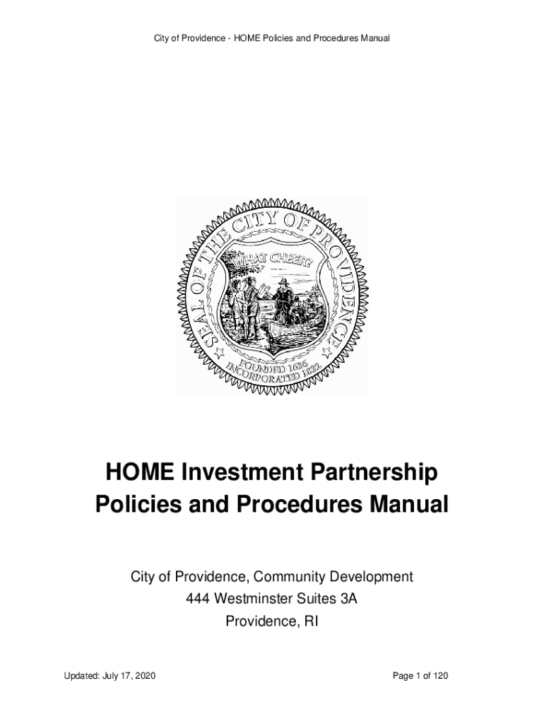 City of Providence HOME Policies and Procedures Mangalore Investment Partnership Policies and Procedures Manual City of Providence, Community Development 444 Westminster Suites 3A Providence, Updated: