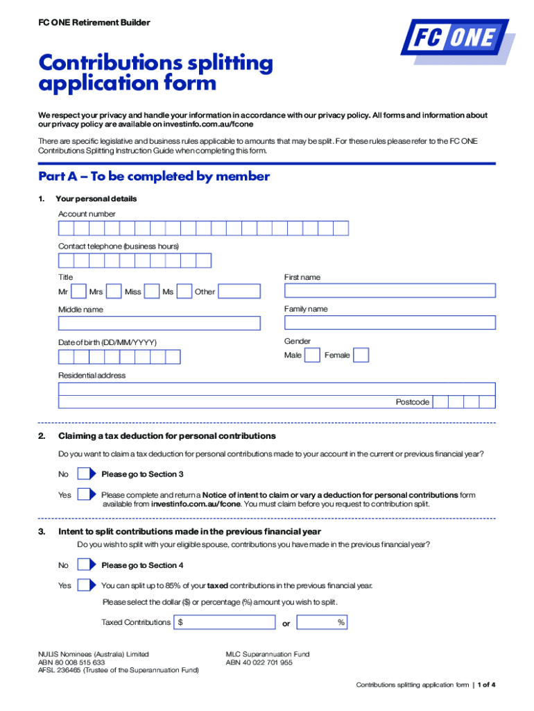 FC ONE Retirement BuilderContributions splitting application form We respect your privacy and handle your information in accordance with our privacy policy. All forms and information about our privacy